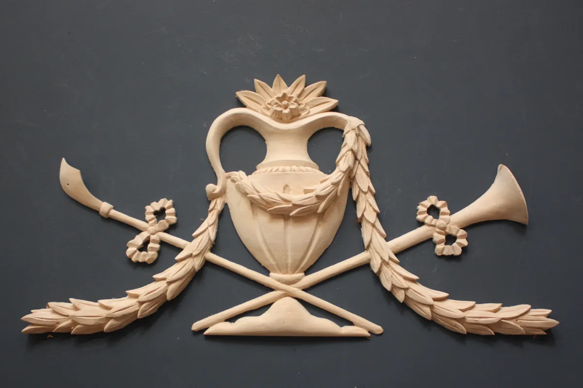 Wood-carved interiors in (historic) buildings, such as mirror frames, mantelpieces, and consoles.